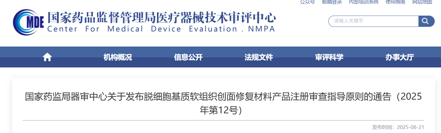 为进一步规范脱细胞基质软组织创面修复材料产品的管理,国家药监局器审中心组织制定了《脱细胞基质软组织创面修复材料产品注册审查指导原则》,现予发布。